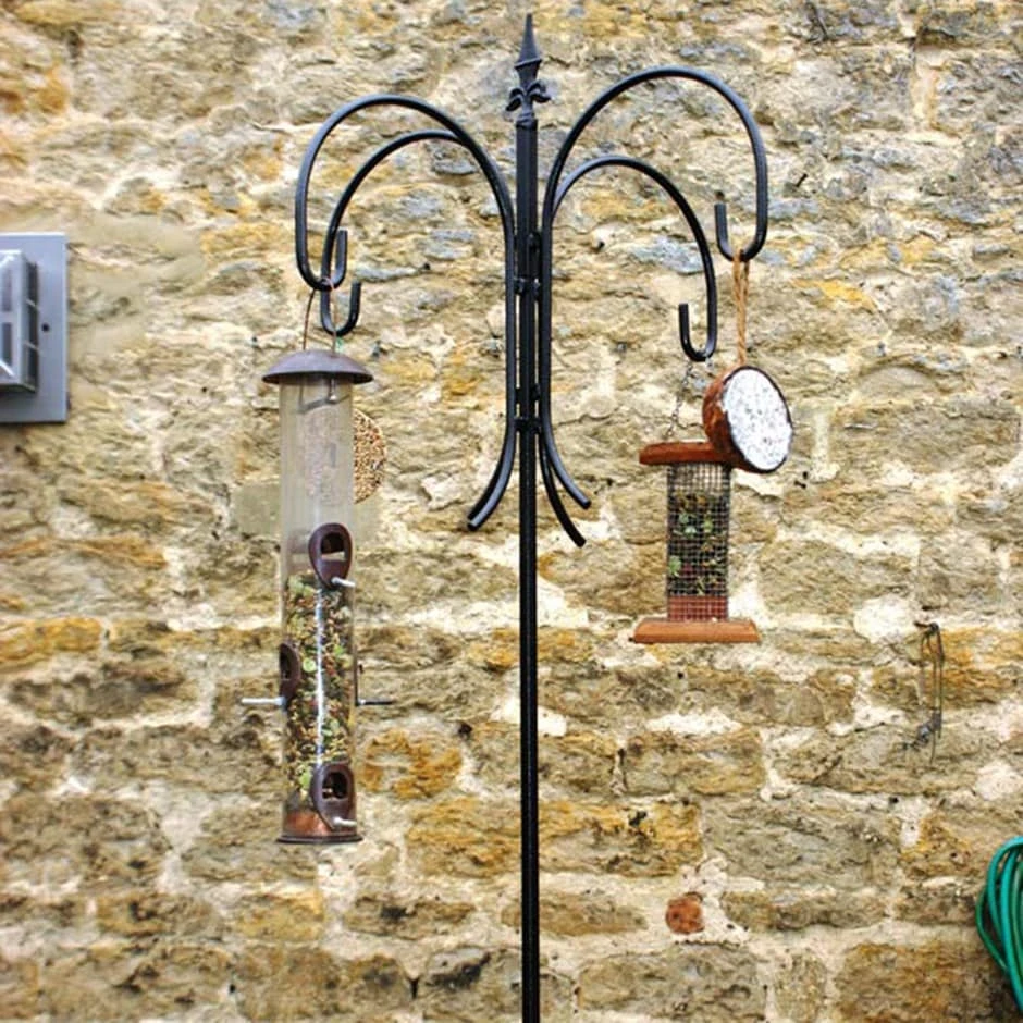 Hang a range of bird feeders in the garden to attract multiple species with this sturdy 4-way crook.
