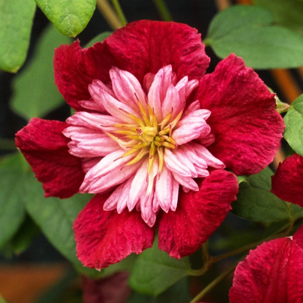 Large, plum-coloured double blooms, each with a paler, frilly-looking eye first appear in midsummer, but repeat well until early to mid-autumn (although later flowers may not be fully double). Noted for its vigour and strength, but well behaved enough not to take over the entire garden. Ideal for larger-sized arches.