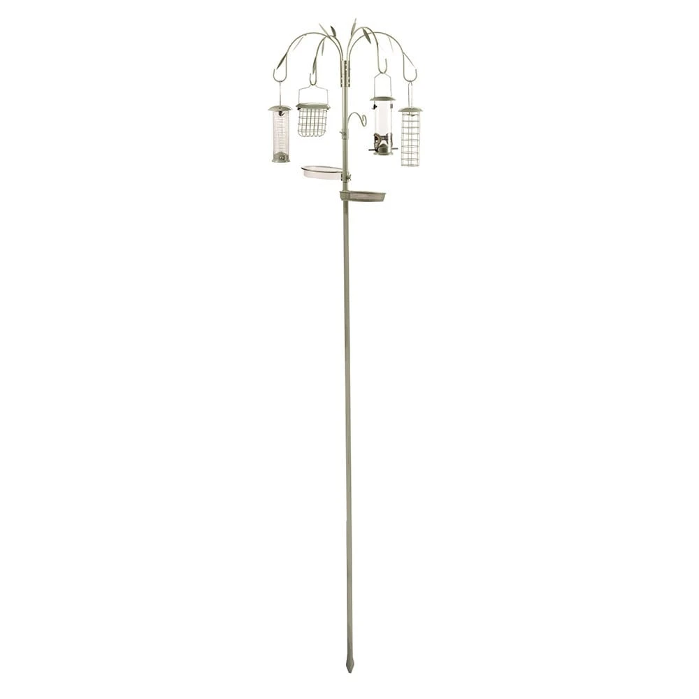 Enjoy a parade of busy birds in the garden with this inviting refuelling station! With metal feeders for seeds, peanuts, suet balls and suet cakes, plus a mesh tray and water dish, it’ll attract a good variety of birds all year round if kept well stocked.